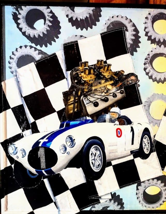 This 34" x 44" multi-media acrylic painting contains real flags glued down with a painted frame. All of which has been sealed with a gloss fixative which won't be destroyed if you spill your beer on it.