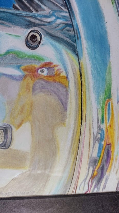 Colored pencil. Drawing 10" x 15' Frame 19" x 23"